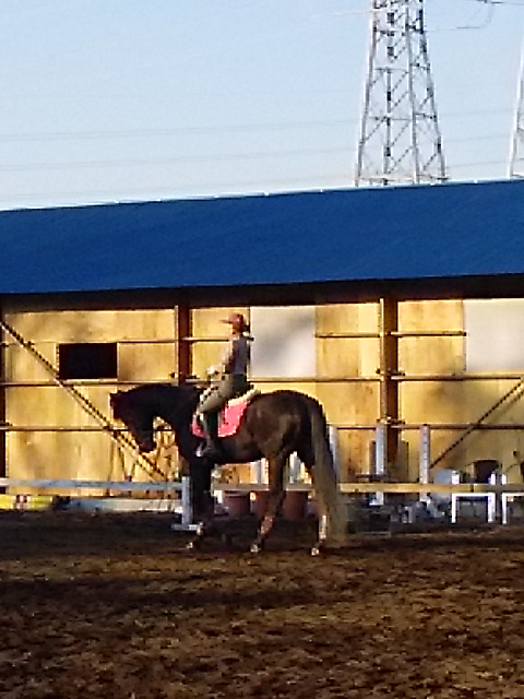火曜日は午前中馬場が渋かったので外に行き、午後は馬場でレッスンしました。