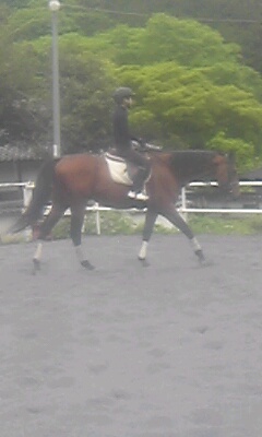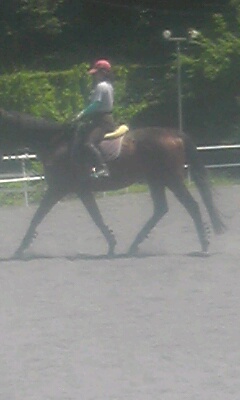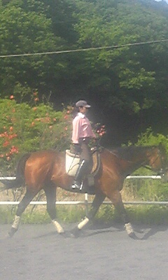 今日は陽射しも強く初夏の陽気でしたが、風がありさわやかな乗馬日和でした。なのに今日はキャンセルもあり2レッスンのみでした。