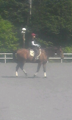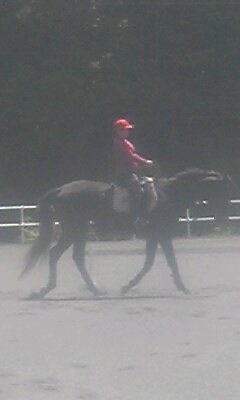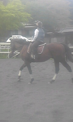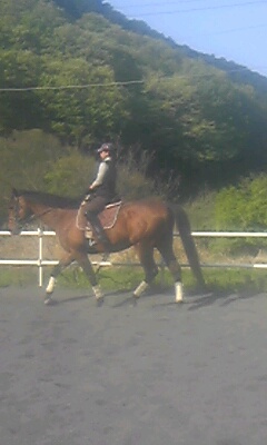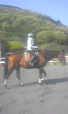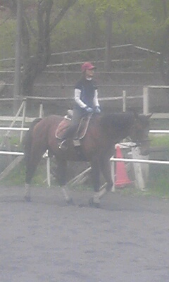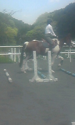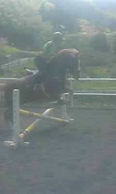 今日はよく晴れて初夏の陽気で暑いぐらいでした。お昼前の障害レッスンは人も馬も汗だくになってしまいました。