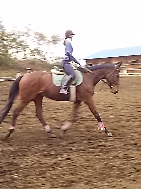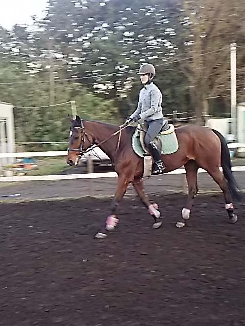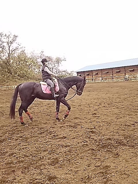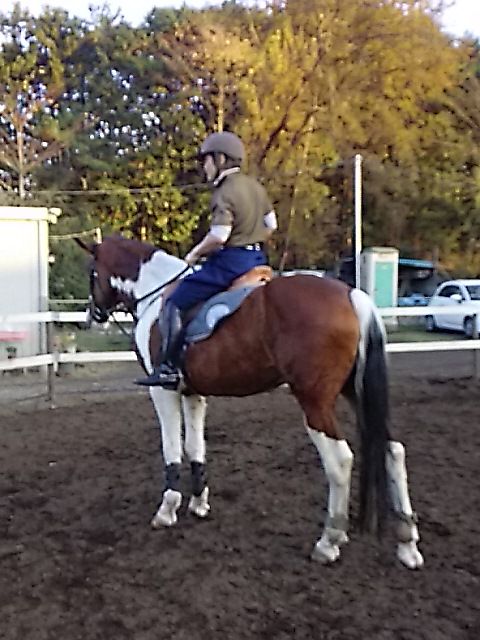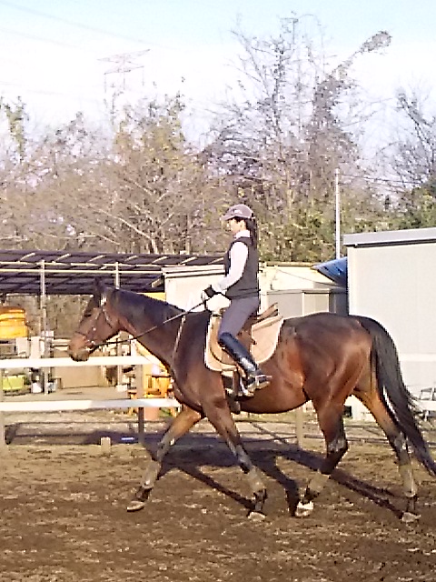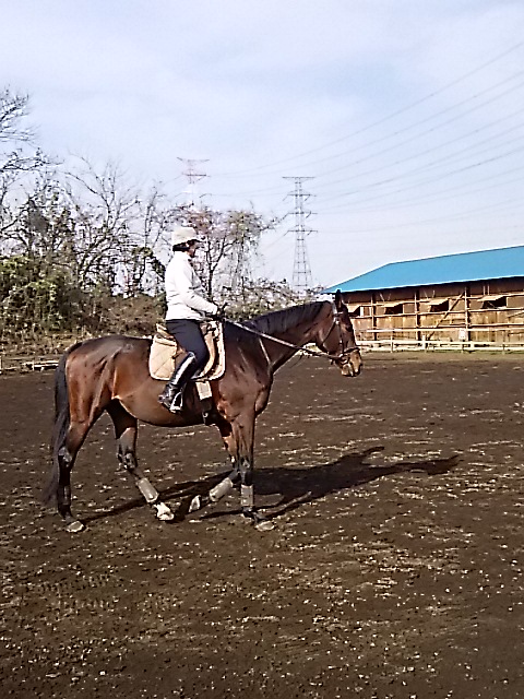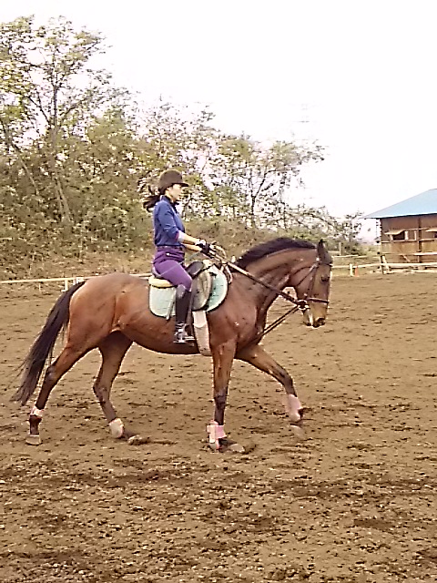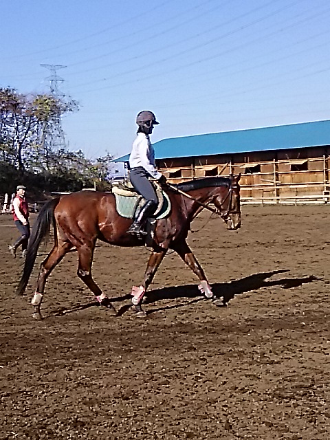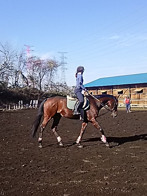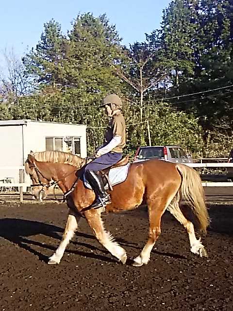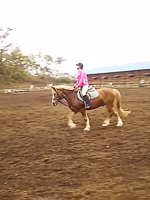 昨日の夕方からの雨で今日は午前中は馬場が渋かったのですが、ちようどレッスンは午後からだったので支障はありませんでした。