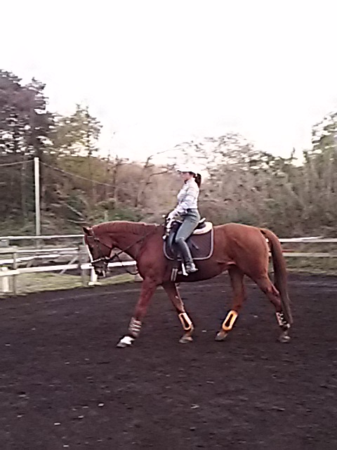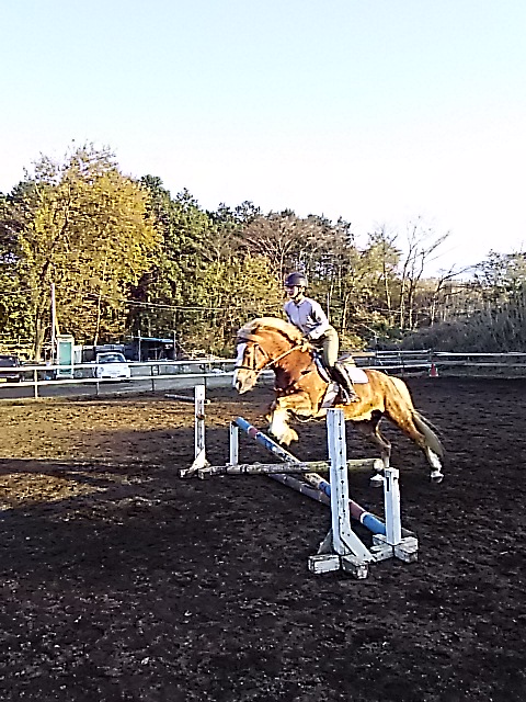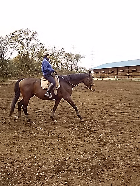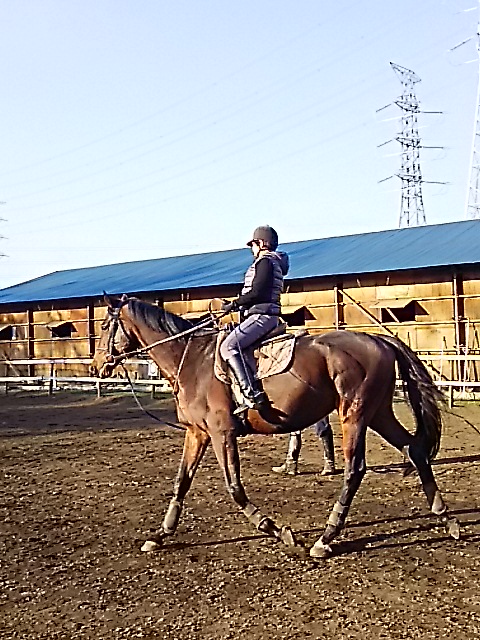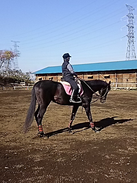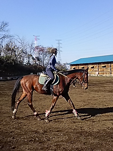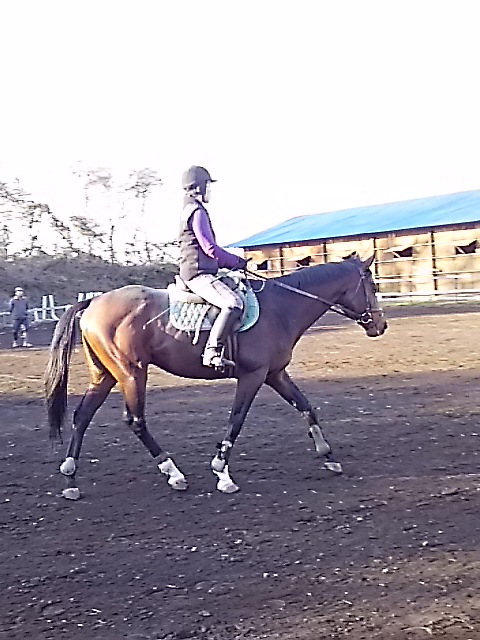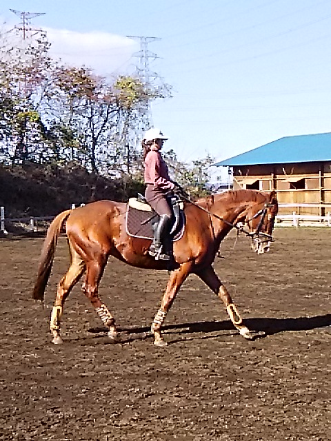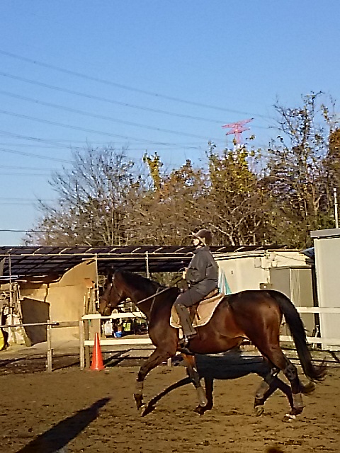 朝一番霜が降りてしまうので騎乗開始が遅くなってしまいますが、昼間は暖かくいので馬場が渇きはじめると早いので助かります。